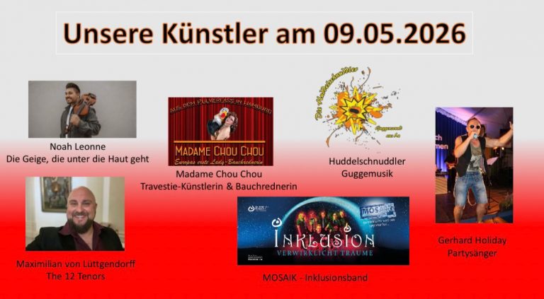 Wir danken allen, die unseren Wunsch zu helfen, teilen. Allen, die aktiv und passiv helfen und allen Künstlern, die unsere Veranstaltungen zu einem unvergesslichen Abend werden lassen. Wir freuen uns sehr, dass Sie mit viel Herzblut und Engagement sowie Freude dabei sind.